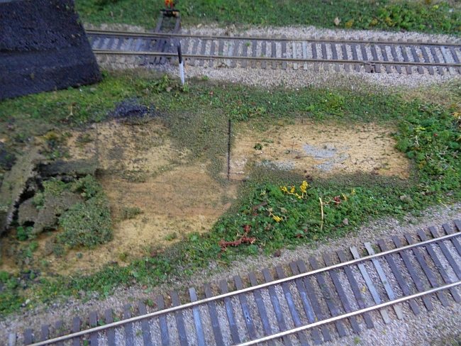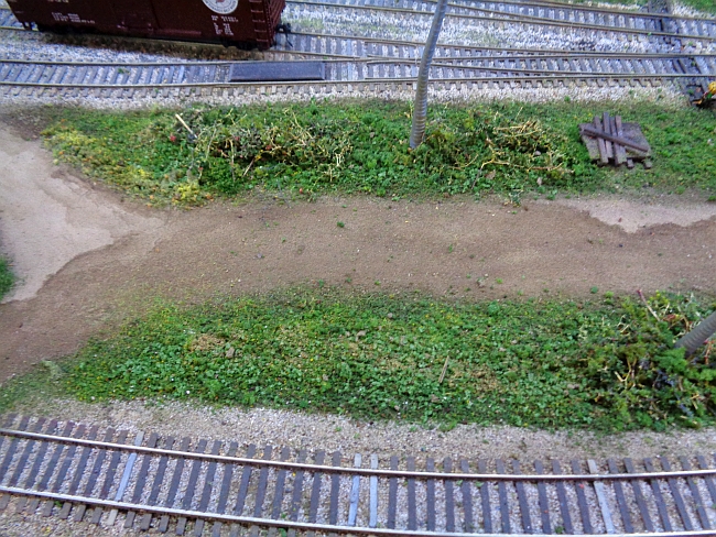 Over the past seven days, I've been redoing the scenery on the A&S RR layout. I covered 14 feet of new and revitalized scenery.
