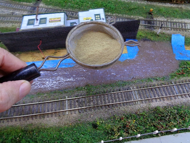 Next, fill a fine mesh sieve or strainer with the SE Fine Dirt. Hold the sieve over the area you want covered and tap on the side of the sieve. This process is the most critical as you want a fine layer of dirt evenly covered over the area.