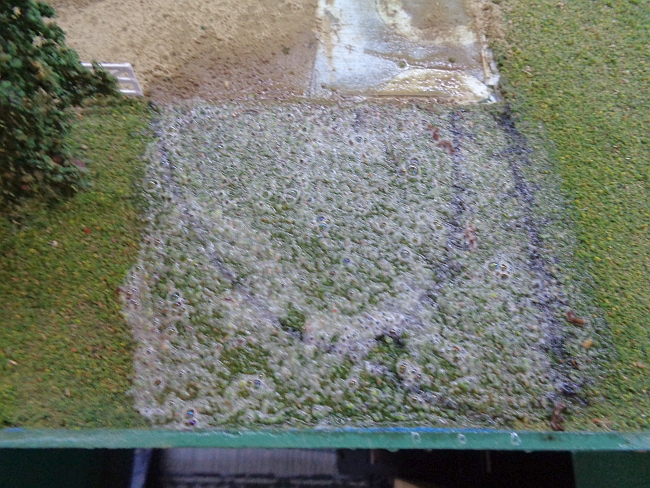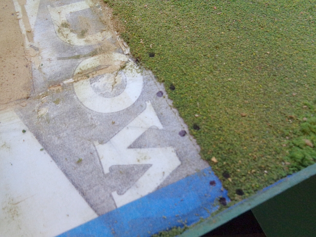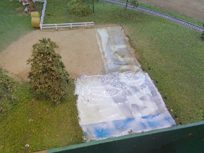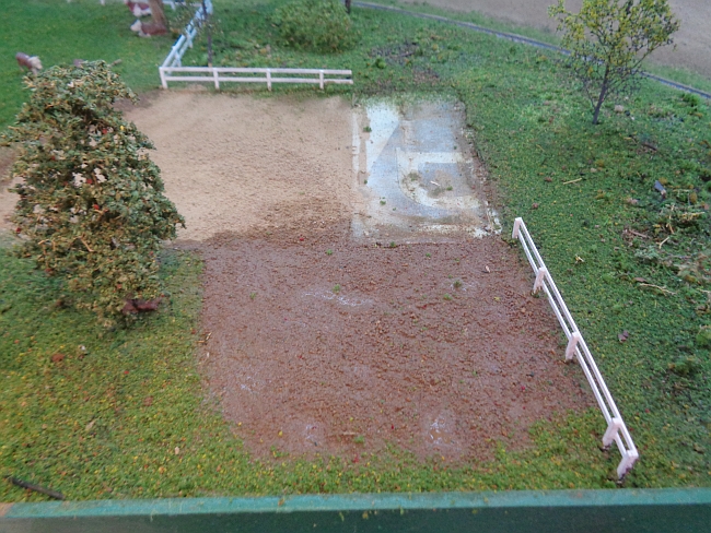 Scenery removed and area dried. The black dots show the new location of the fence.
