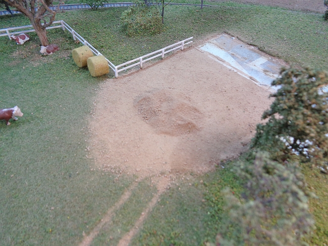 Once I got the loose dirt shoveled over to the west side of the barn, I secured it with matte medium.