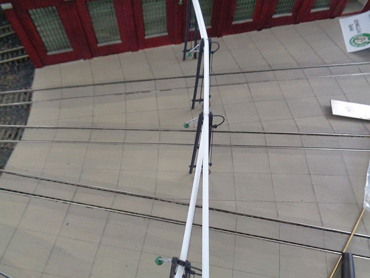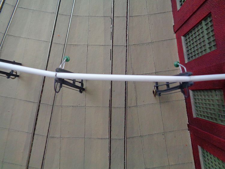 After gluing the poles in place, I started to feed the piping through the utility poles.