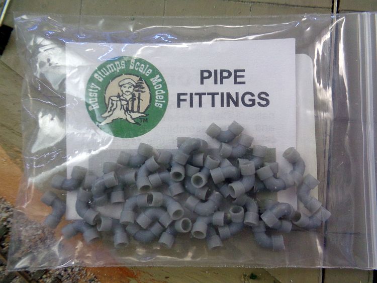 I purchased 3/32" pipe fittings from Rusty Stumps Models. I got straight, 90 degree and 45 degree fittings.