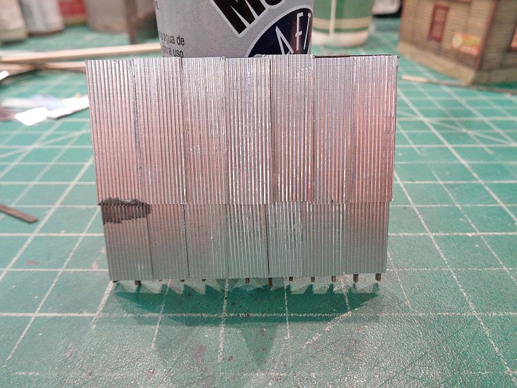When dry, actually the next day, I  cut and glued on the galvanized pieces. I used 3M double sided tape for this.