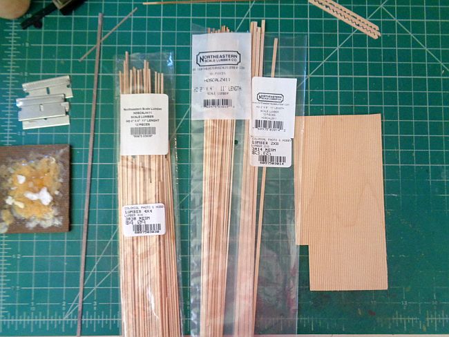 Time to build the outside staircase. I'm using the scratch built stringers, HO scale 2X4s, 2X8s and 4X4s. I'm also using 3/32" scribed siding for the stair platforms.