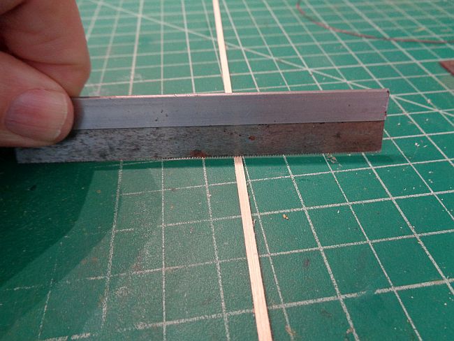 Prior to staining the strip wood, I used a fine tooth saw and distressed the wood. Using a little pressure, I placed the saw on the strip wood and pulled the wood under the fine tooth blade.