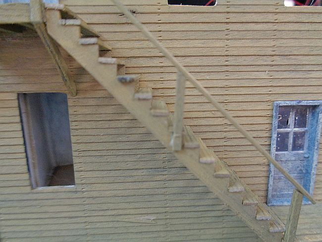 The next photo shows the railing attached/glued in position. The center post hasn't been glued in place.