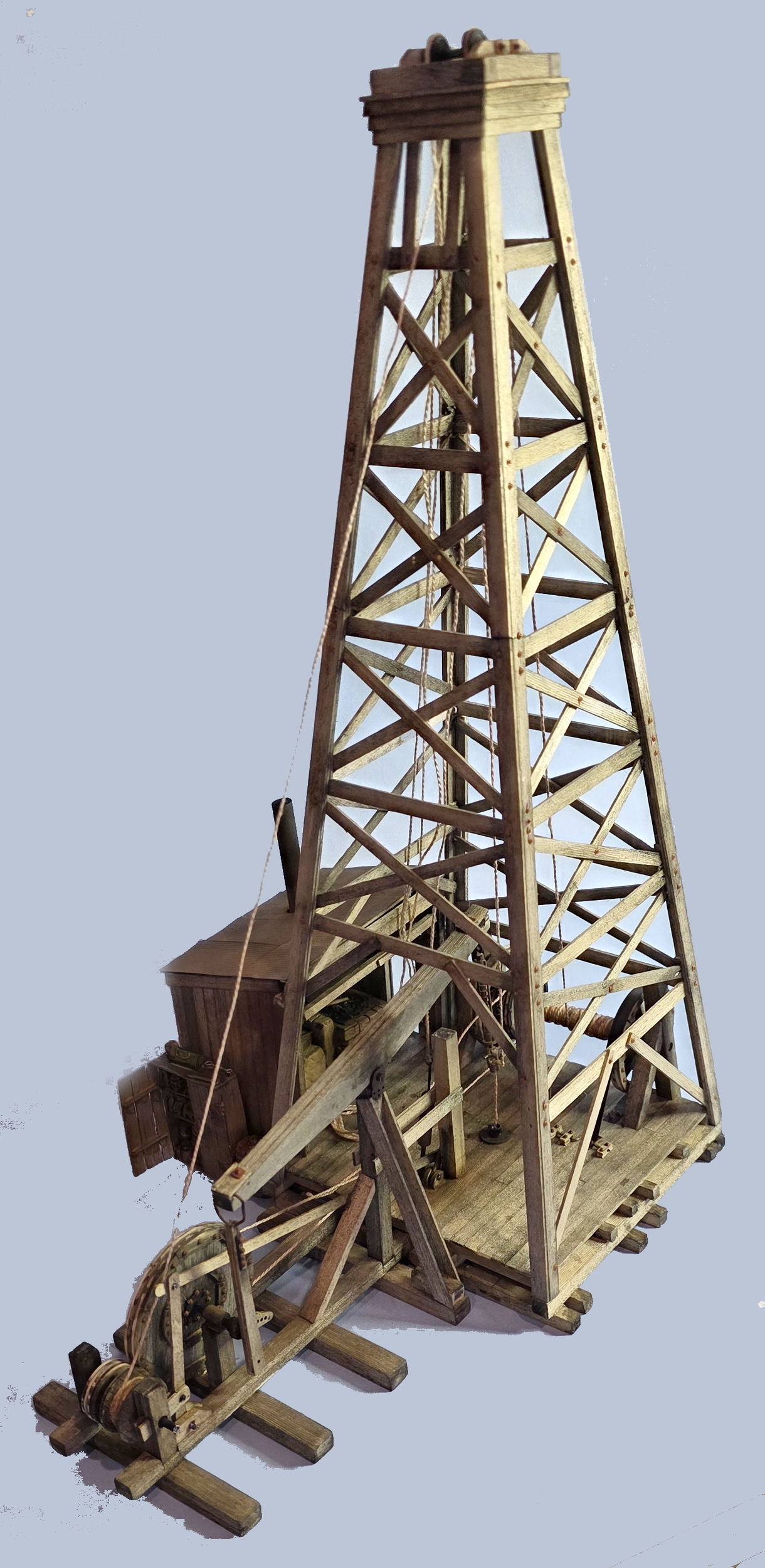 On a related note, today I was talking with my 96-year-old uncle, and he told me my maternal grandfather used to work on wooden oil rigs in Seminole, Oklahoma.  His specialty was building wooden oil tanks from cedar and redwood.  My Uncle said the kids used to swim in the tanks before they were used for oil. They lived in tents so I will find a place for a tent or two on the layout. Cool memory, so this oil derrick will have an Anderson Oil sign and a wooden oil tank.  When I was a kid, I recall seeing the wooden oil tanks in the oil fields south of Wichita Falls, Texas.
