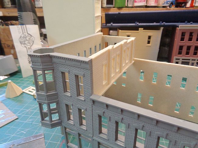 When I attempted to glue the third story wall in place, I found it to be just over 1/8" to long.