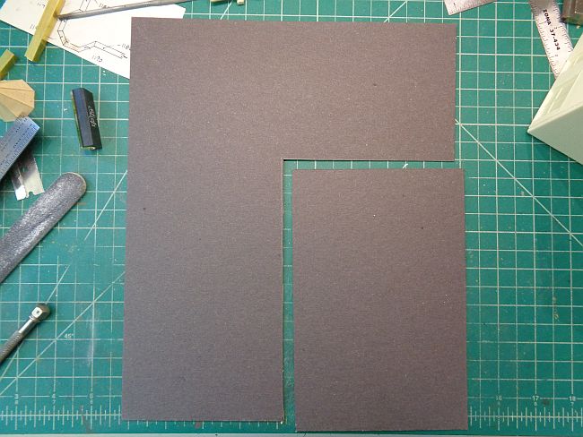 The kit has two pieces of black cardboard for the roof material. I cut two pieces to fit the roofs.