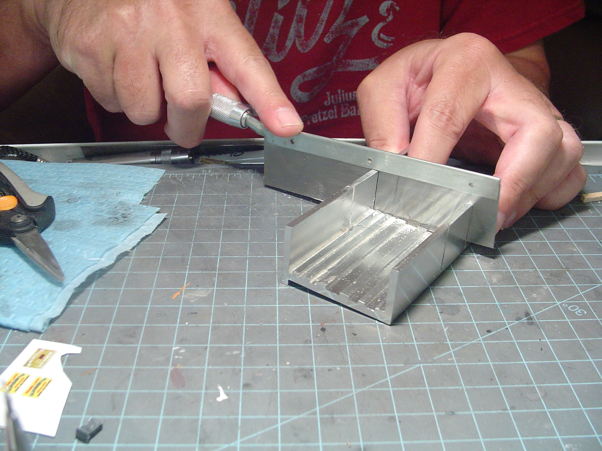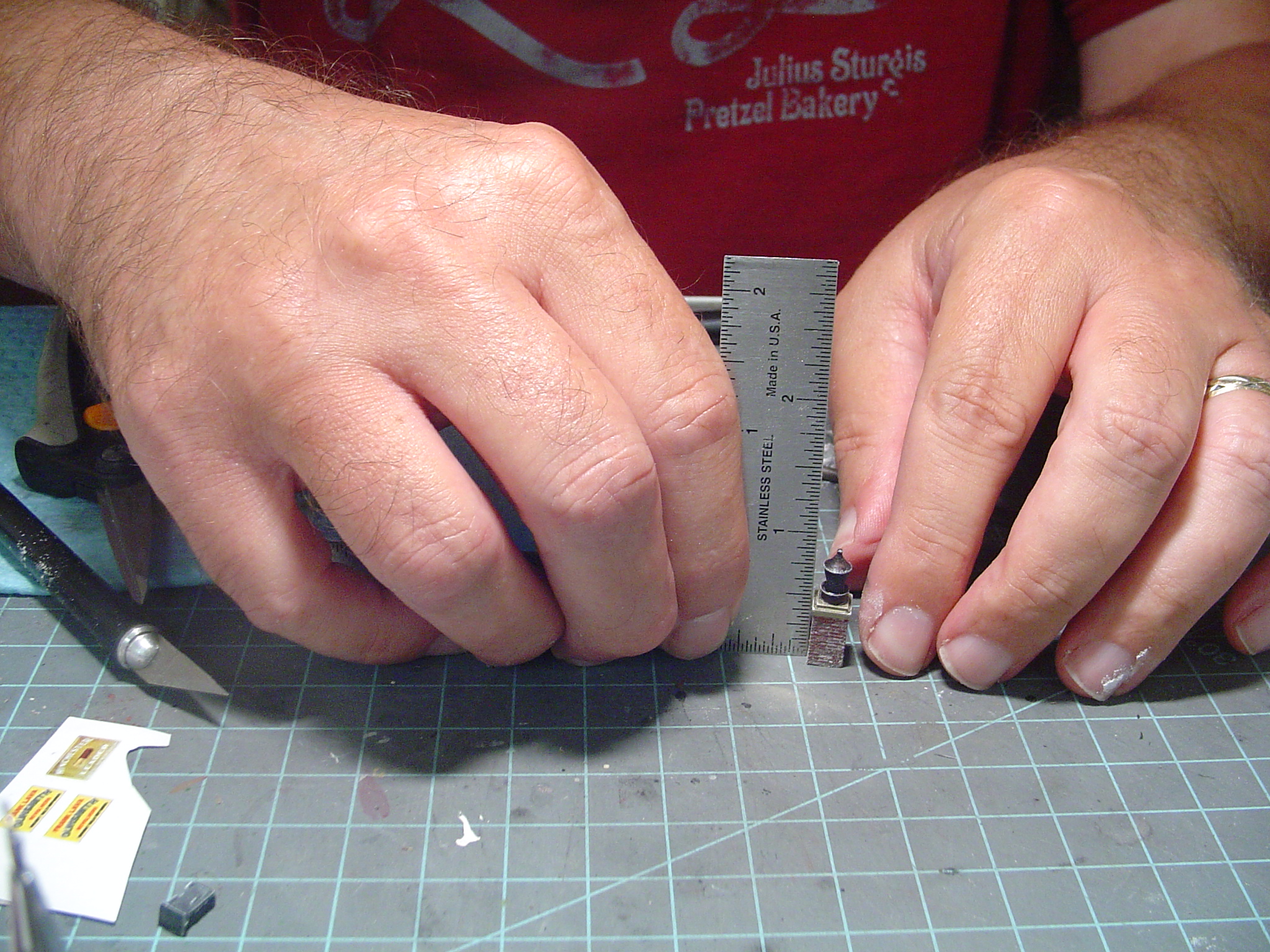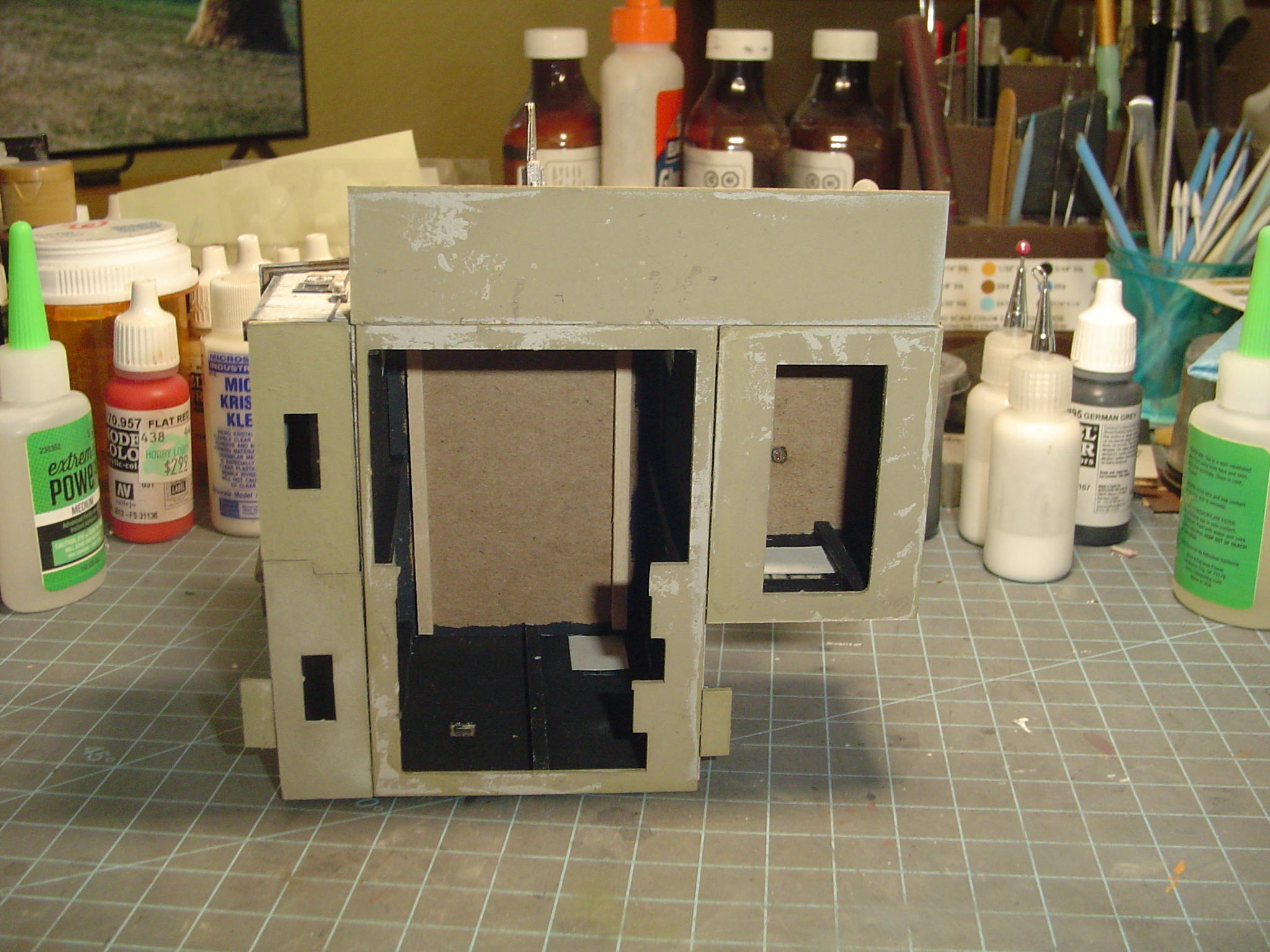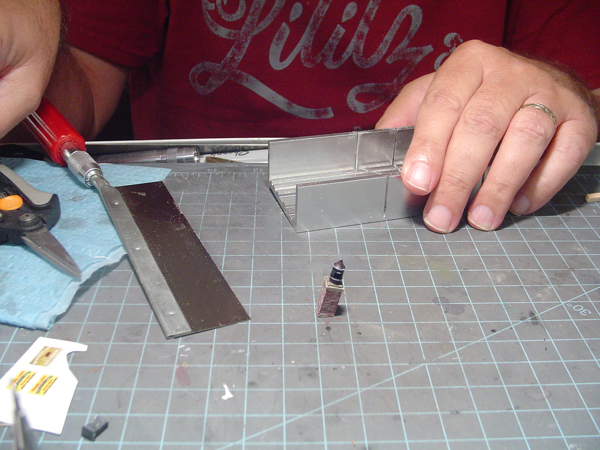 Then I drilled holes for the two LED's. I just eyeballed where I wanted them to go. One towards the front of the build and one towards the rear of the building.