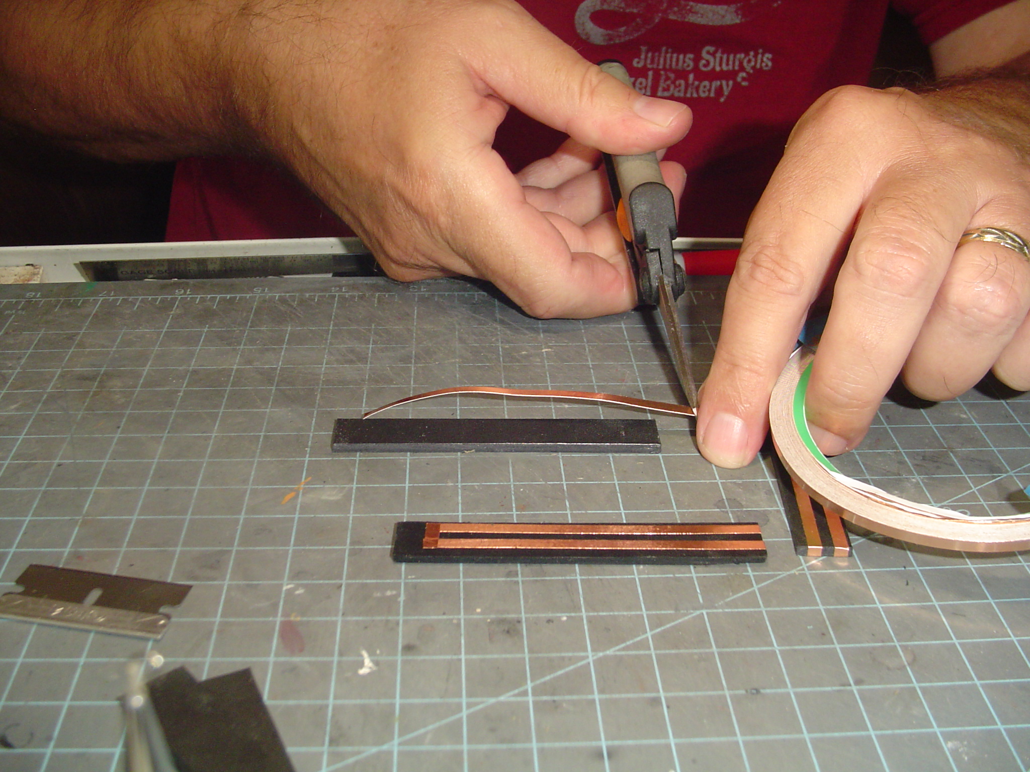 The only hard thing about using the copper tape is getting it separated from the backing. I use a razor blade to start to peel it from the backing.