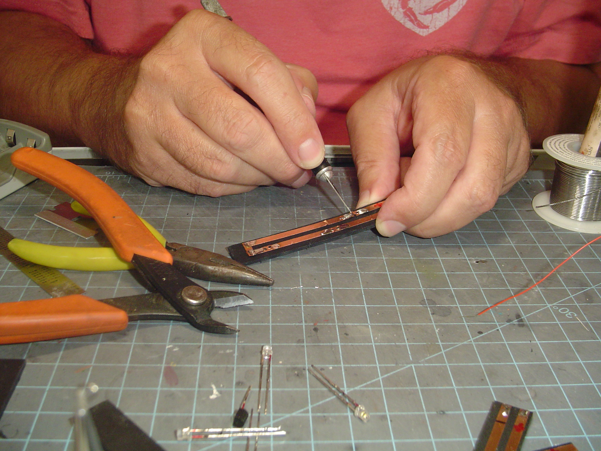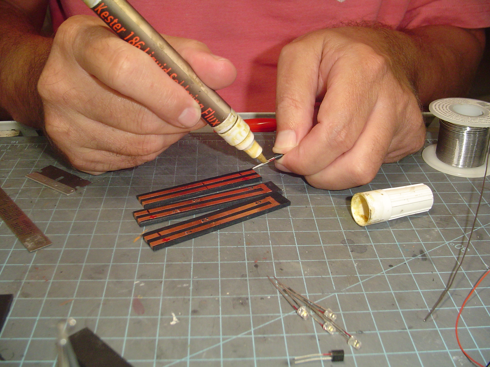 Everywhere I was planning of soldering things I applied flux.  This includes the Current Limiters, LED's and the copper tape.