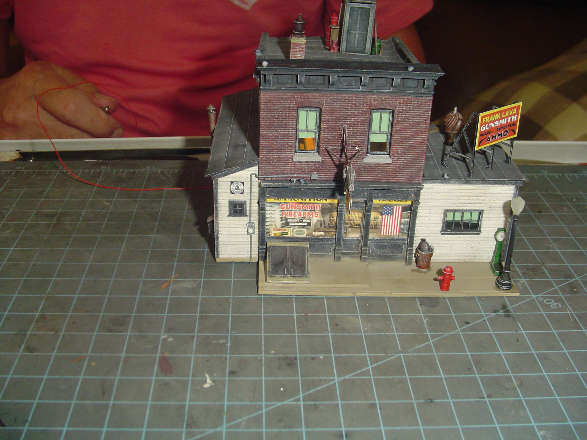 Here are the final pictures. The gun sign was a bit finicky to add and I added it last because there's a high probably it will get knocked off if bumped. There's not a lot holding the pistol in place nor the little sign hanging off the barrel of the pistol.