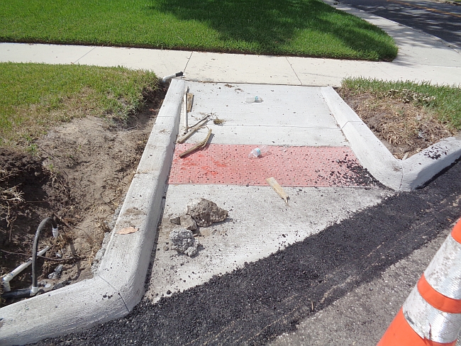 I called and told the project manager the corners were already ADA complaint. He told me this was a new regulation. Now, for the record, I'm not ADA negative. I just wanted to know why the change. I asked was this a new City Ordinance or a Federal Mandate Change to the Federal ADA Law. He couldn't answer, a total dumb a**.