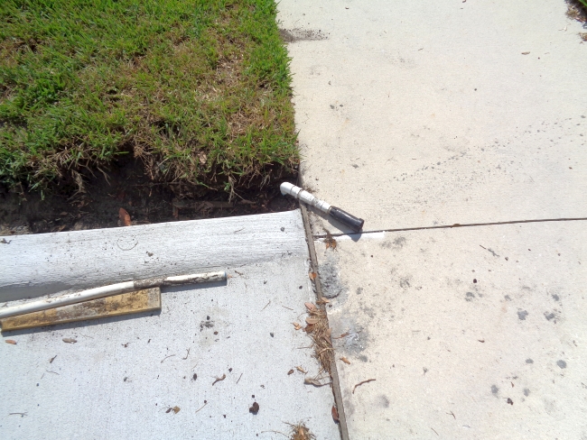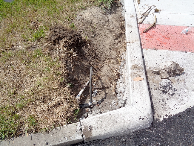 Notice my then green grass is now dead and two sprinkler heads are broken. The above photo also shows how they left it, trash and pieces of concrete on the ramp.