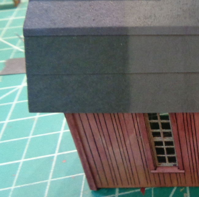Also, since this isn't a straight gabled roof, I made a fold where the roofing material folds over the lower portion.