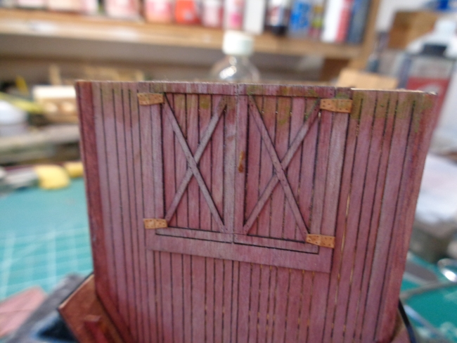 After adding the barn doors, I then used a dark gray to highlight the barn roof.