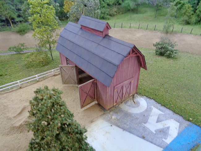 The barn looks terrific.  The roofing came off perfectly.  The subtle weathering sets this model off.  Nice work all around.