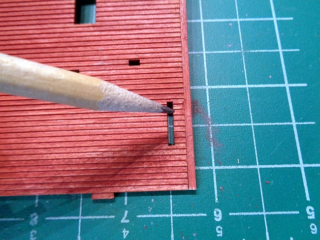 This afternoon I got a little done on the corner store. The instructions call for 1/16" bracing inside the lower store front doors and windows. I did that after painting them with Flowuil GN Gray Green.