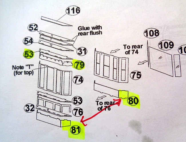 This next photo shows I'm fixing to glue part (54)T2 on top of part 79.