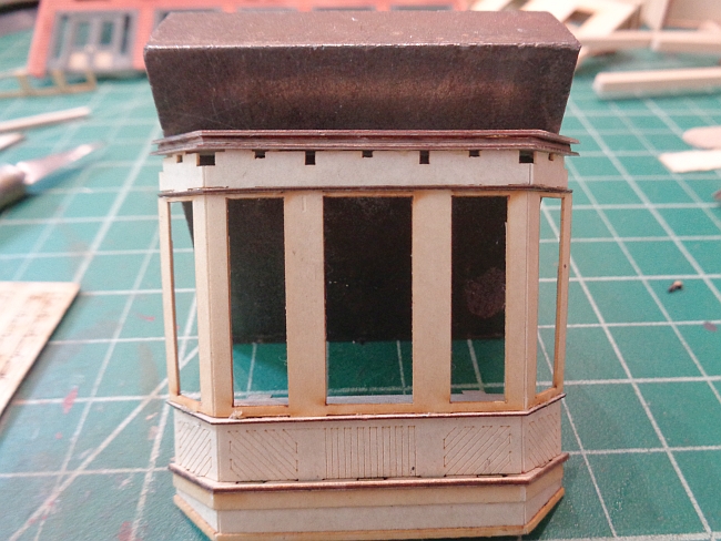 Did you paint the corbels on the carrier sheet before you cut them out?  And did you paint the edges before or after you glued them into position?  The assembly looks really good.