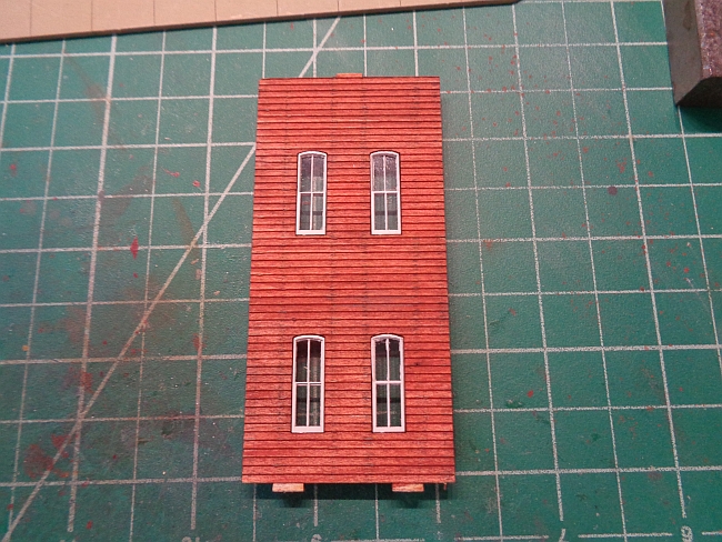 I then added the exterior window frames. These were peel and stick. I removed the paper and still added a little glue to the underside and pressed them against the exterior wall around the windows.