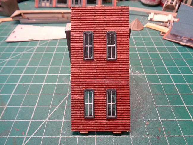 I turned the end wall over and pressed the four windows into the openings. I made them flush with the exterior wall as seen in the photos below.