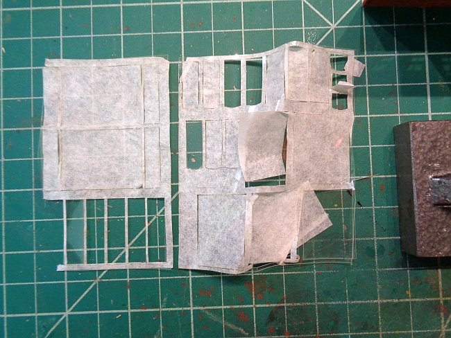 So, I peeled the paper off the back of the windows and stuck them to some spare acetate.