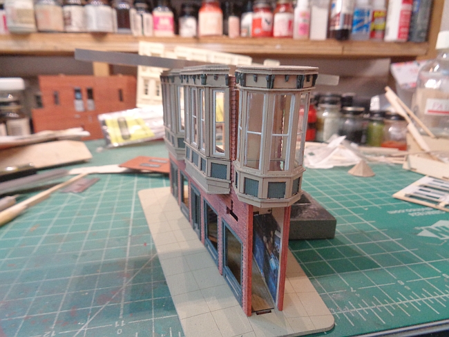 I did install some interior shots of stores in the lower level. I added some LEDs and wired them in series. More on this tomorrow.