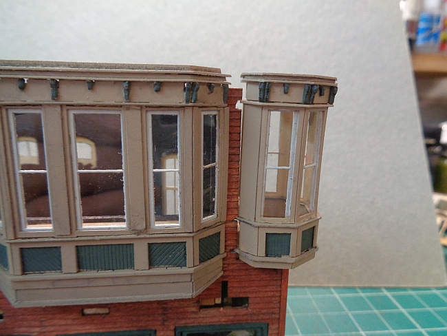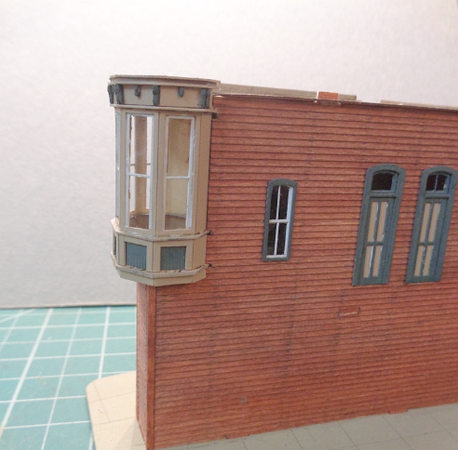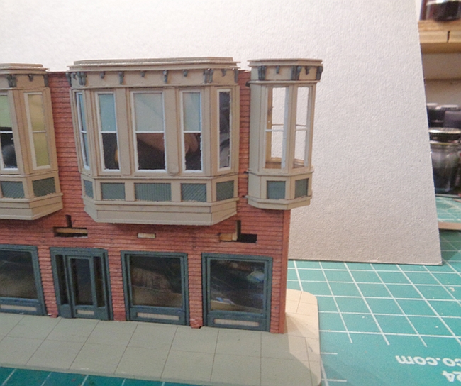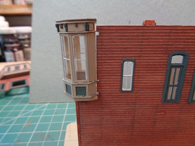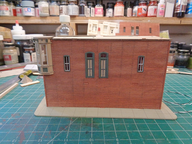 Now, for the big event of adding the tower to the building. I worked with it for about 30 minutes and tried to get it in place without chopping anymore of the side wall.