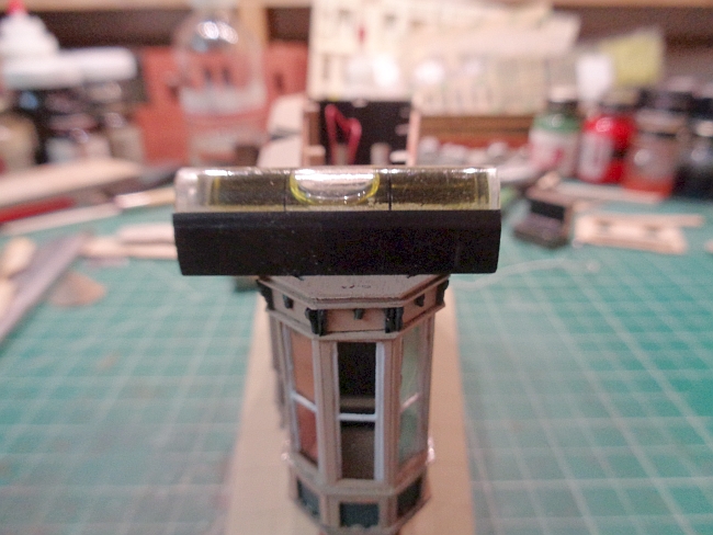 After this final test fit, I added glue and again pressed the tower in place.