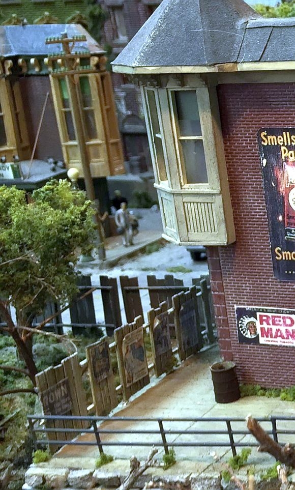 When Jeff designed this kit, he did the wall in wood siding. I'm not sure who made the original kit of the corner store but, the walls in that first kit were brick.