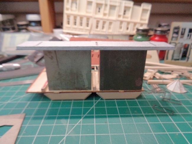 The new roof was removed and glued to the top of the canopy frames.
