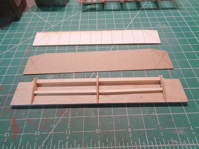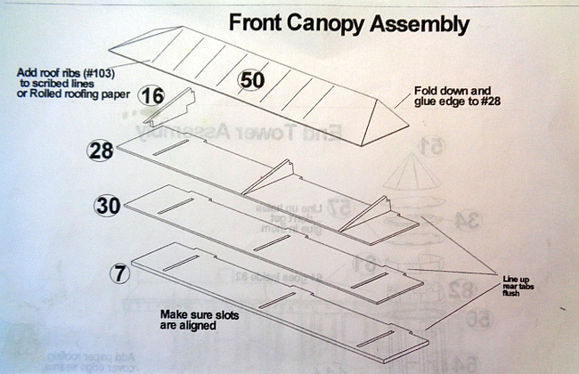 Due to my cardboard roof panel is less that half the thickness of the original, I added supports to the top of the canopy. I did this to support the thin new roof panel.