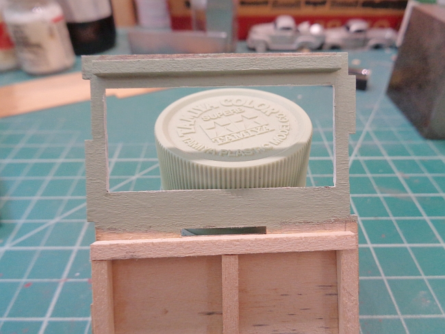 Since I'm adding some interior detail, I wanted to have a light color on the interior walls. I chose Tamiya Sky. It is Light Green in color but called Sky on the bottle.