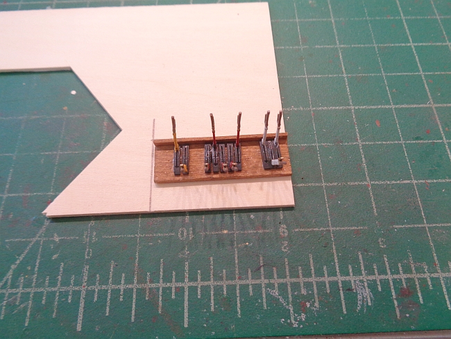 The base was cut out of the sheet lumber, stained and glued under the levers.