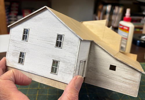 The barn looks great.  Nice work on the paint.  Do you apply shingles before or after you glue on roof cards?