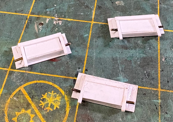 I was missing gravity discharge doors because they were on the same missing sprue as the trough-style hatches, so I scratchbuilt my own: