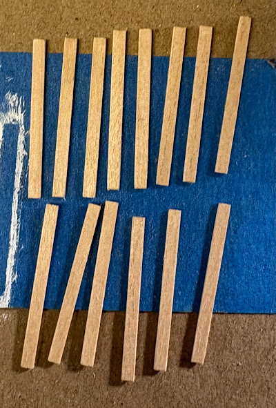The trim comprises scale 6 by 6 stripwood.  Once the walls are assembled, each side butts up against the 6 by 6 corner pieces.