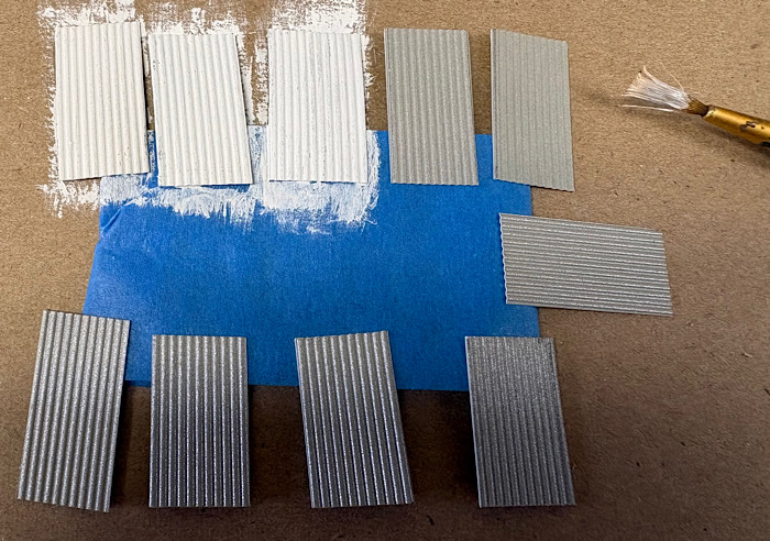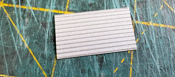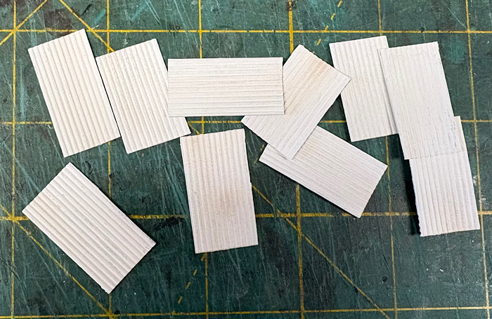 The first step was to cut out pieces 8 scale feet by 4.5 scale feet, a little wide but those proportions will fit the building better.