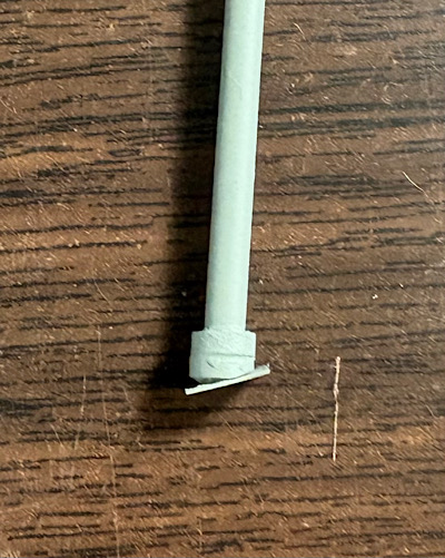 I was worried the small base would be insufficient to hold the elevator in place over time, so I glued a square of styrene to the base, and attached the assembly down to the homasote base with four track nails.  Here it is with the scenery partially in place to cover it.