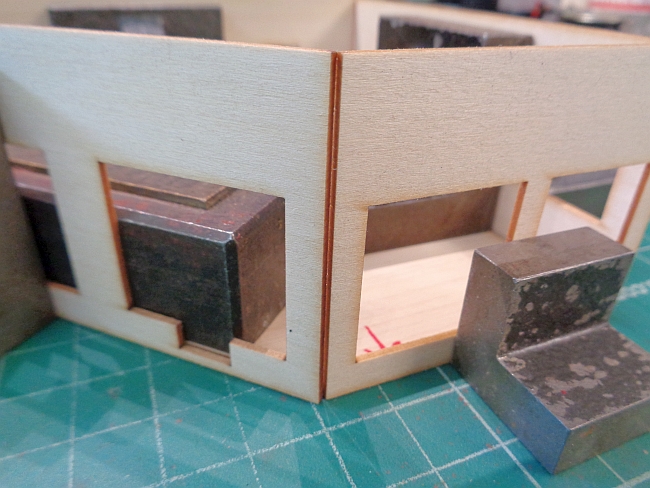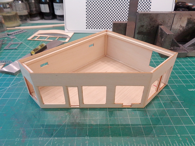 I decided to glue the walls together as one sub assembly. I didn't want to glue the walls to the base one at a time.