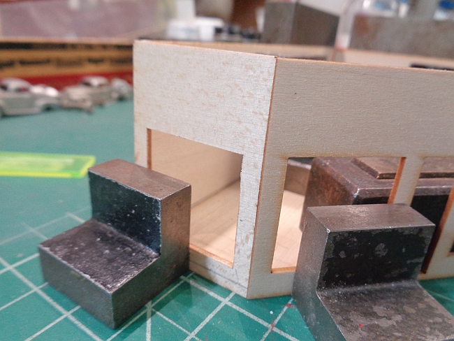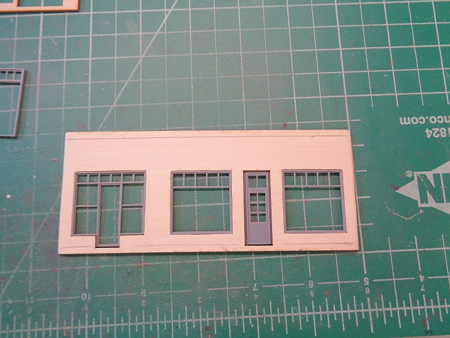Prior to gluing any walls together, I made test fits of all the windows that go with the main service station.