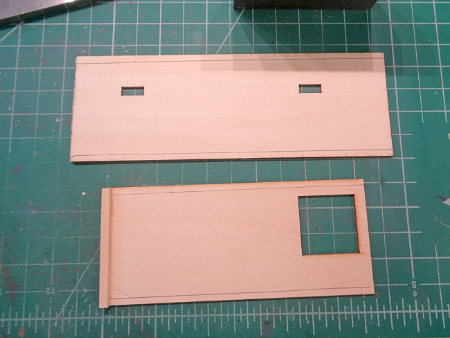 The large front wall, nothing fit. Referring to the photo below, all three window openings needed a little sanding for the plastic windows to fit. Mainly the sanding was on the bottom of the three openings. I could force them in but plastic window side frames buckled. The door opening was the opposite as it was to large.
