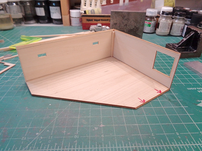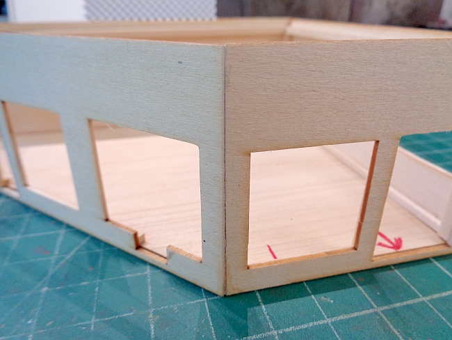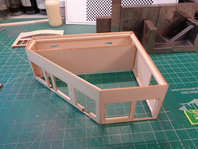 I started by gluing the rear and right side walls together.