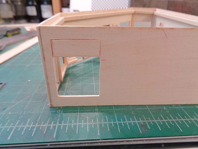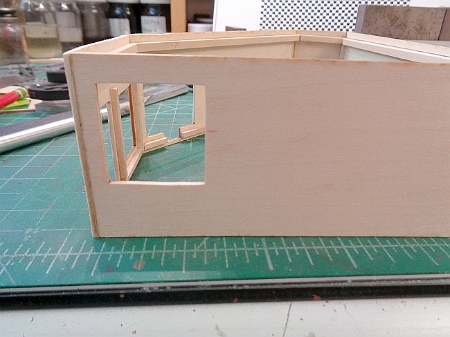 However, I glued the wall to the other two walls. This wall and window opening is upside down. The window is to sit lower in the opening.