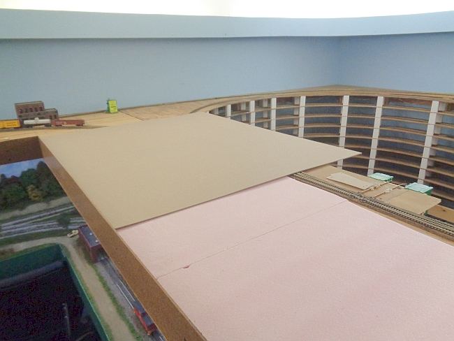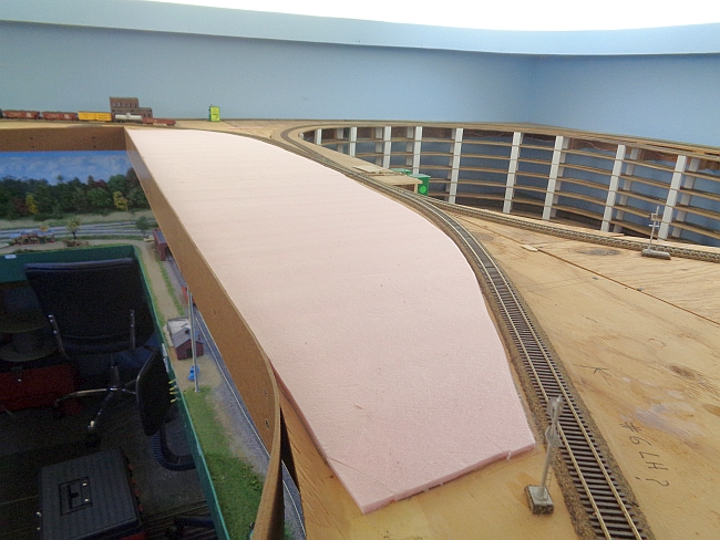 I cut and glued two 1/4" pieces of Owens Corning, Pink Panther, foam on the plywood. I cut these to fit.