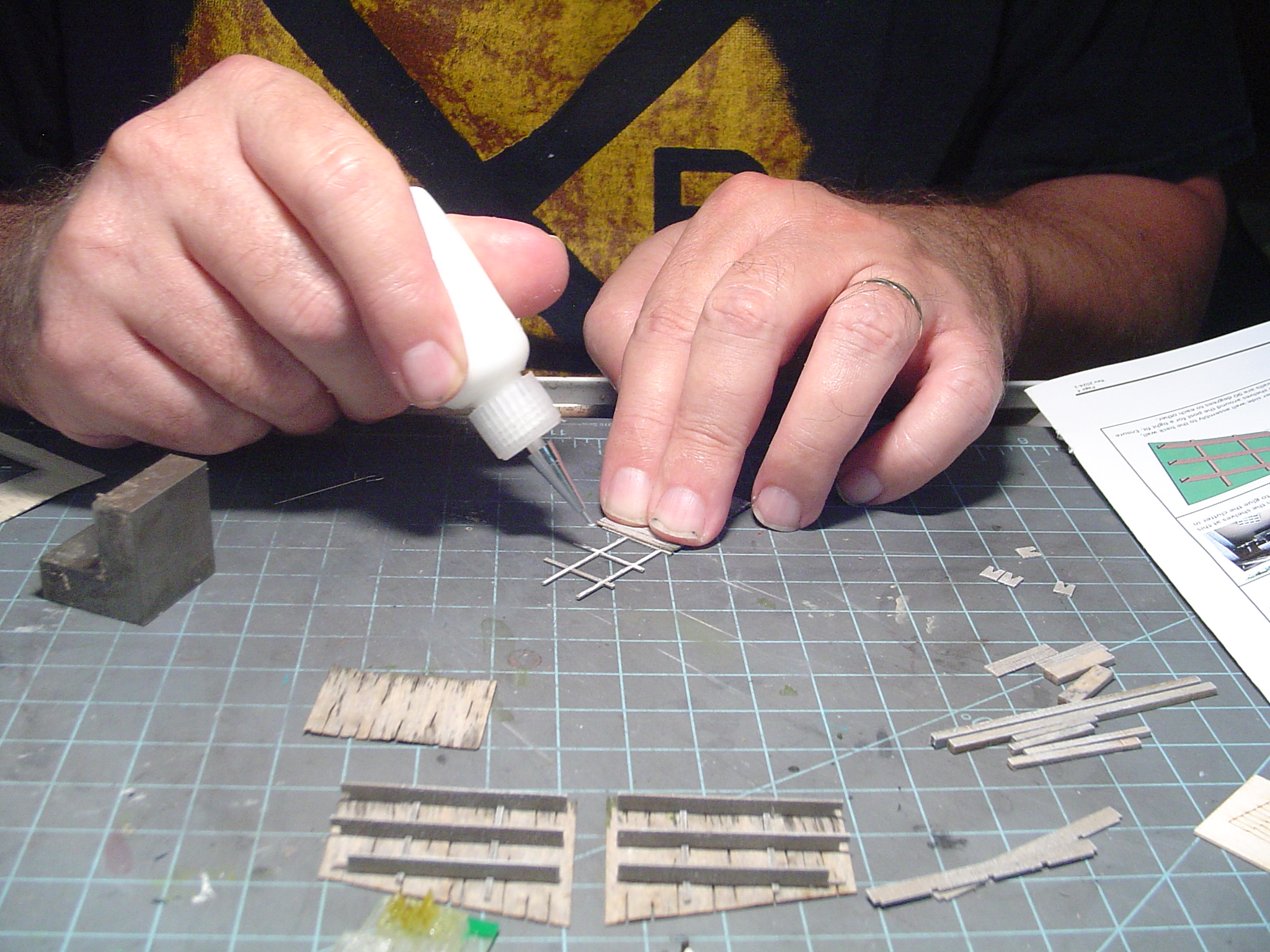 Okay, the other end wall being glued in place.