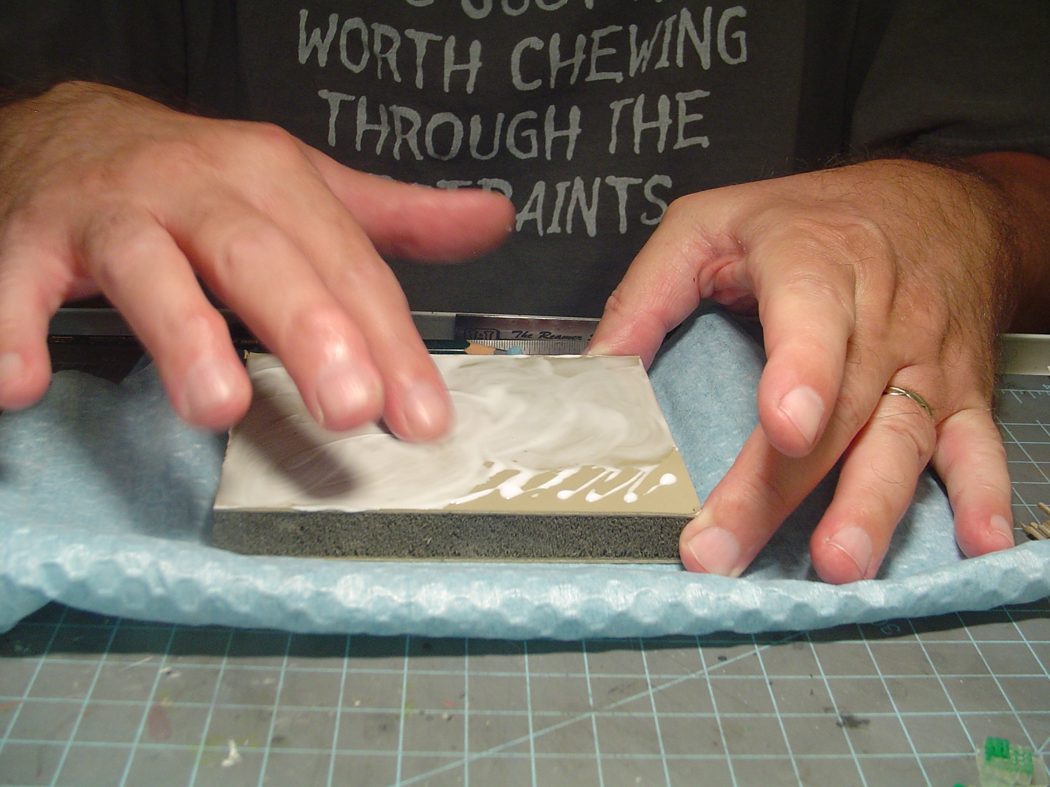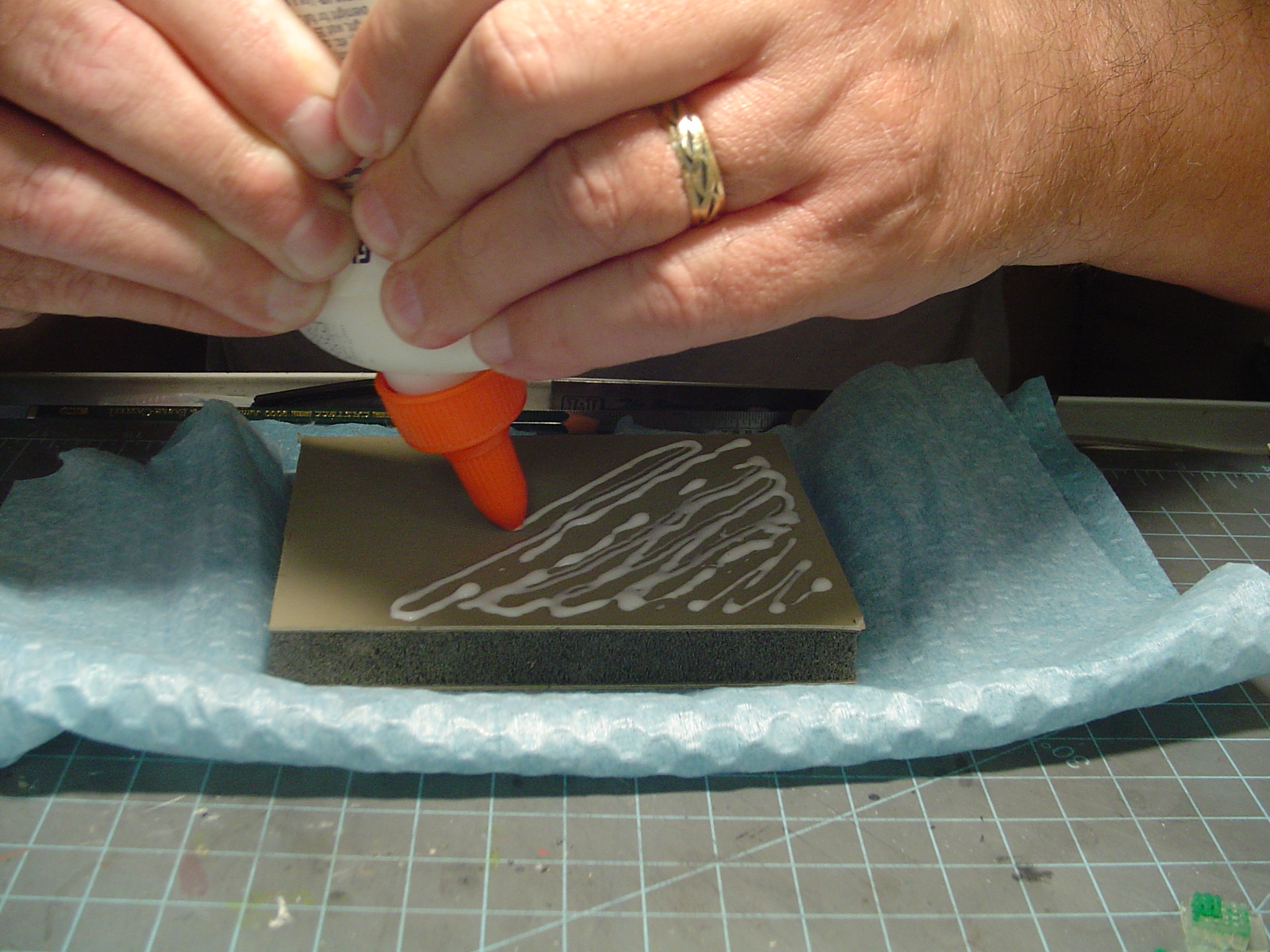 Then getting my finger dirty smearing the glue evenly over the surface.