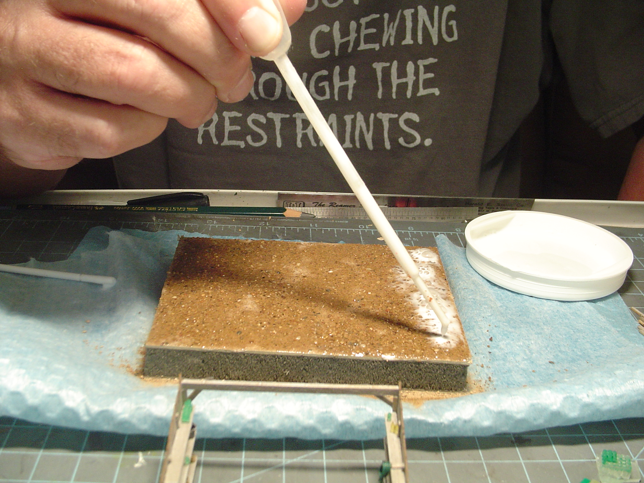 While wet, I piped on some diluted Elmers White Glue. Roughly 50/50 but accuracy is no big deal here.